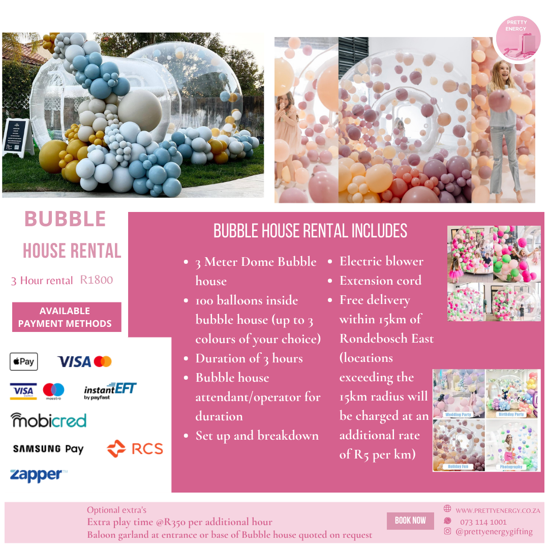 To fit the bubble house comfortably we would need the space of 6 meters long and 4 meters wide.